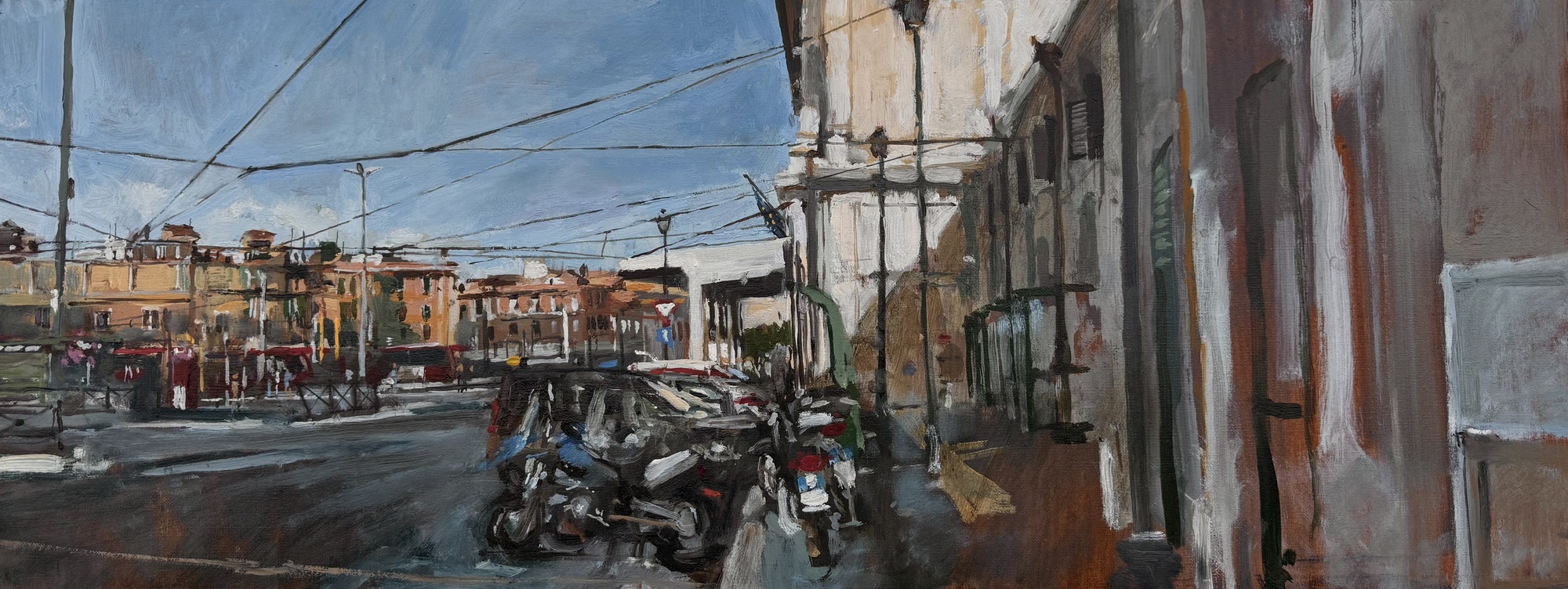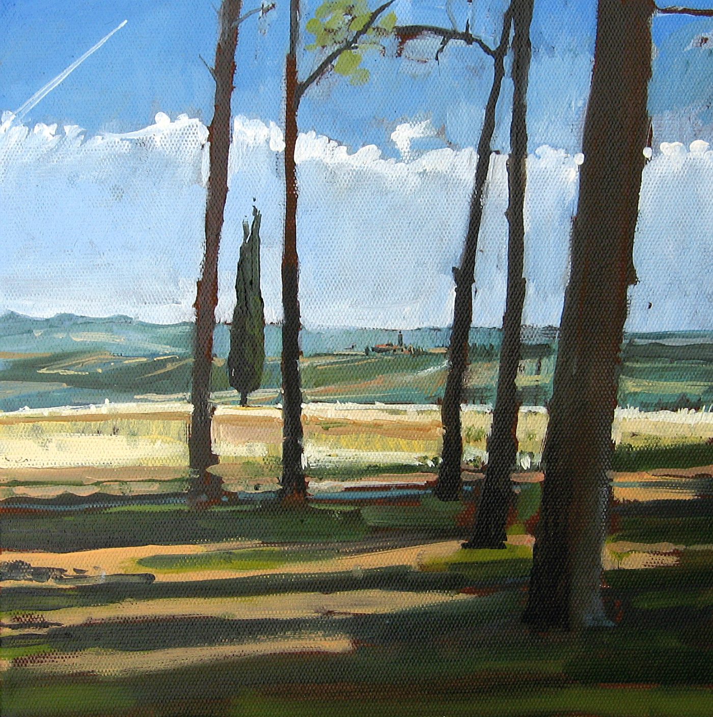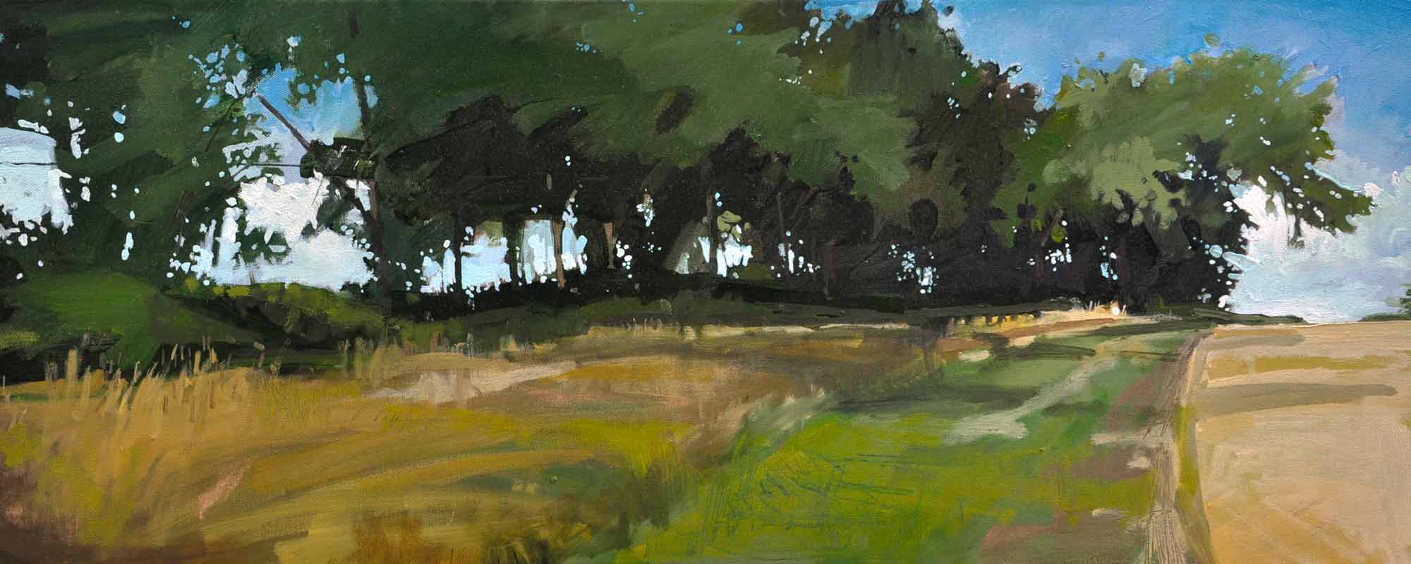 There are three main strands to my work, shady summer trees, sea and sky, and more recently unassuming urban scenes and snapshots of contemporary city life.