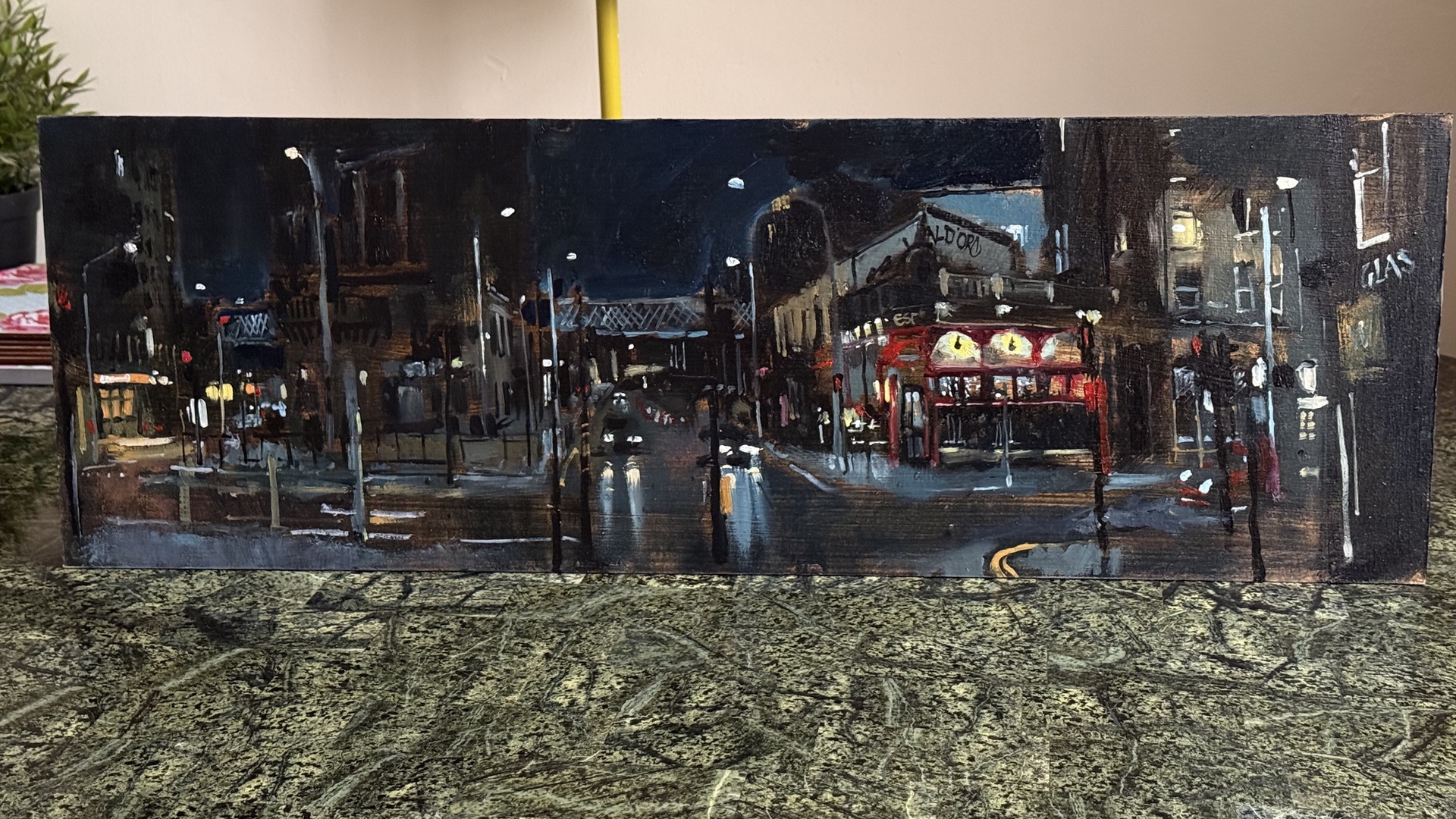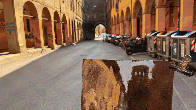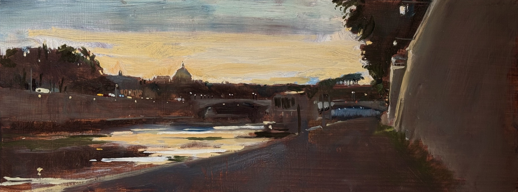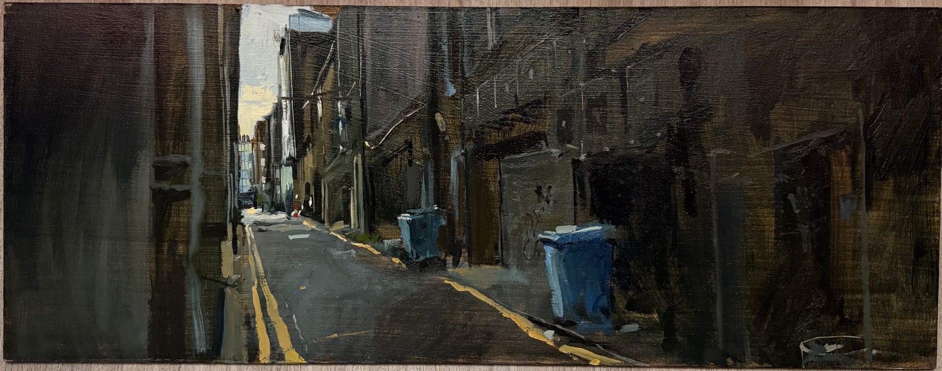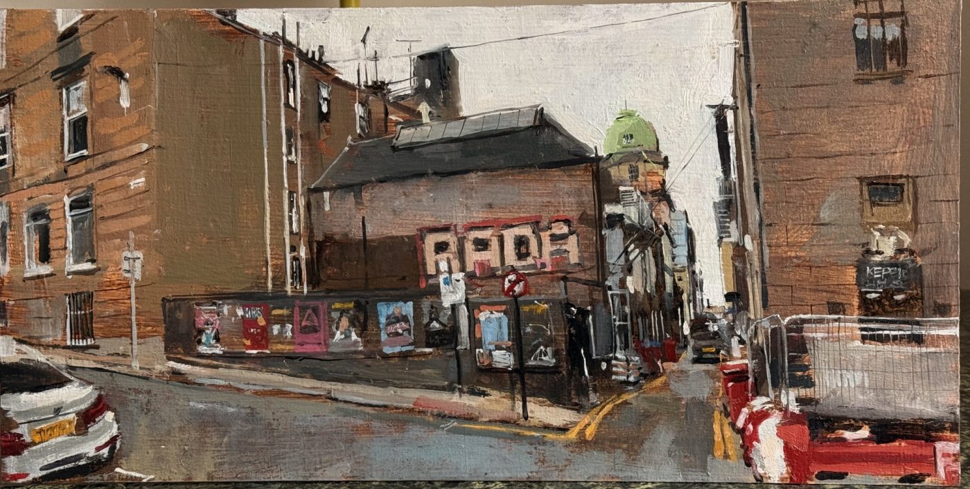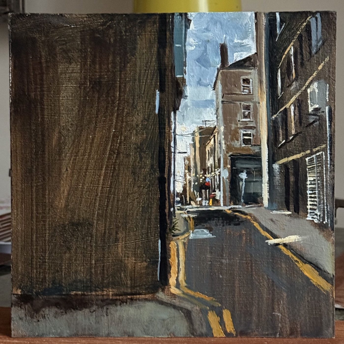 This means lugging mutiple canvases and boards, large and small, easel, palette and paints down winding rocky paths to the beach, through fences and nettles into woodland or through the bustling streets of Soho dodging traffic and busy urban life and navigating public transport with large wet canvases in London Glasgow and Rome.
