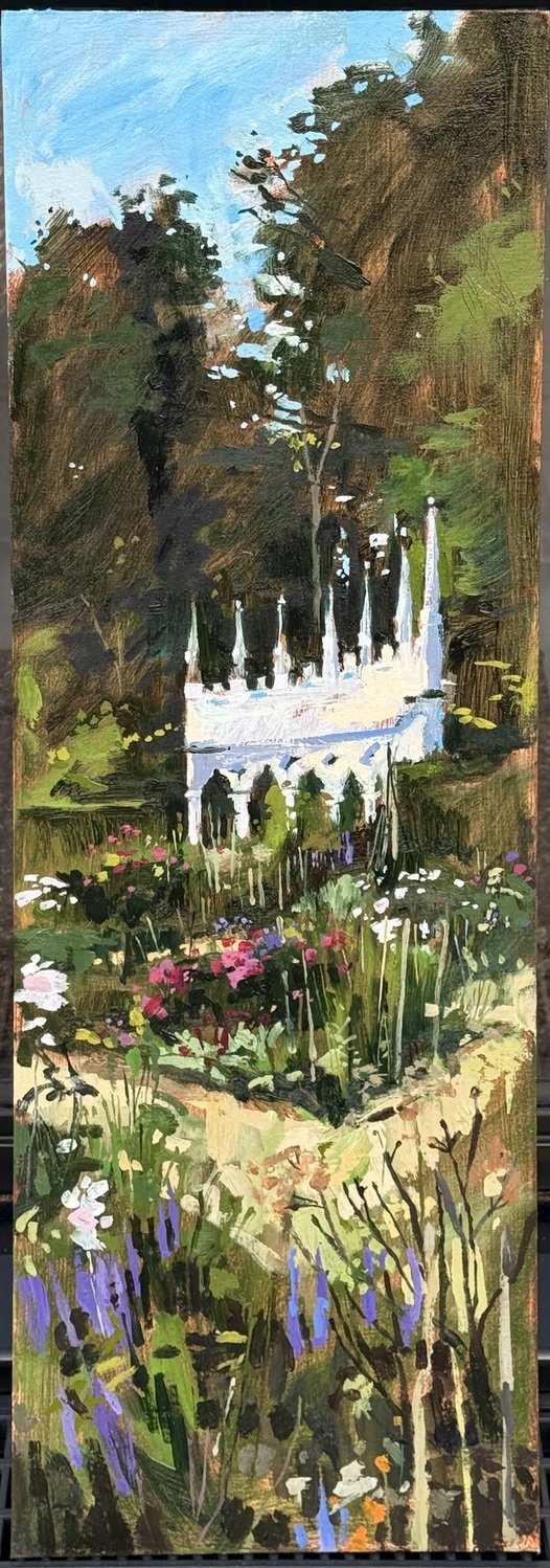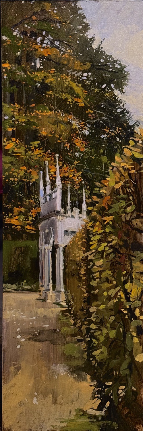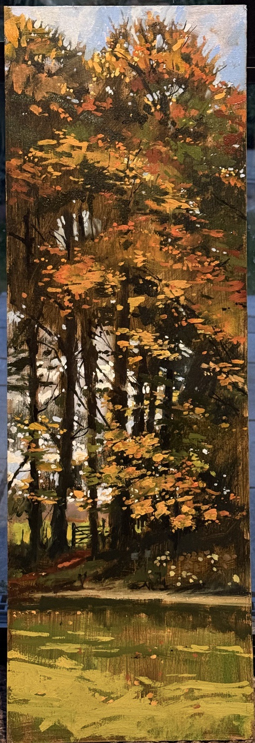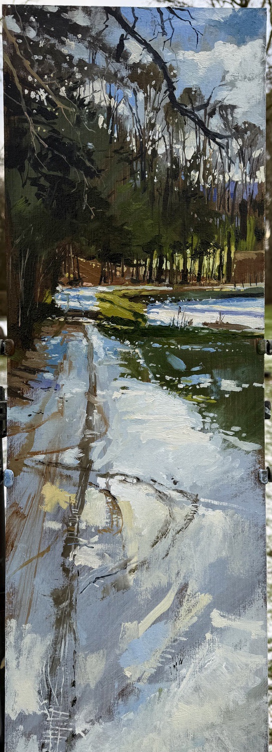 I’m a plein air painter. I’ve forgotten how to work in a studio; my practice is almost exclusively rooted in plein air on the spot observation. Nothing is added to the paintings in the studio except varnish and a frame.